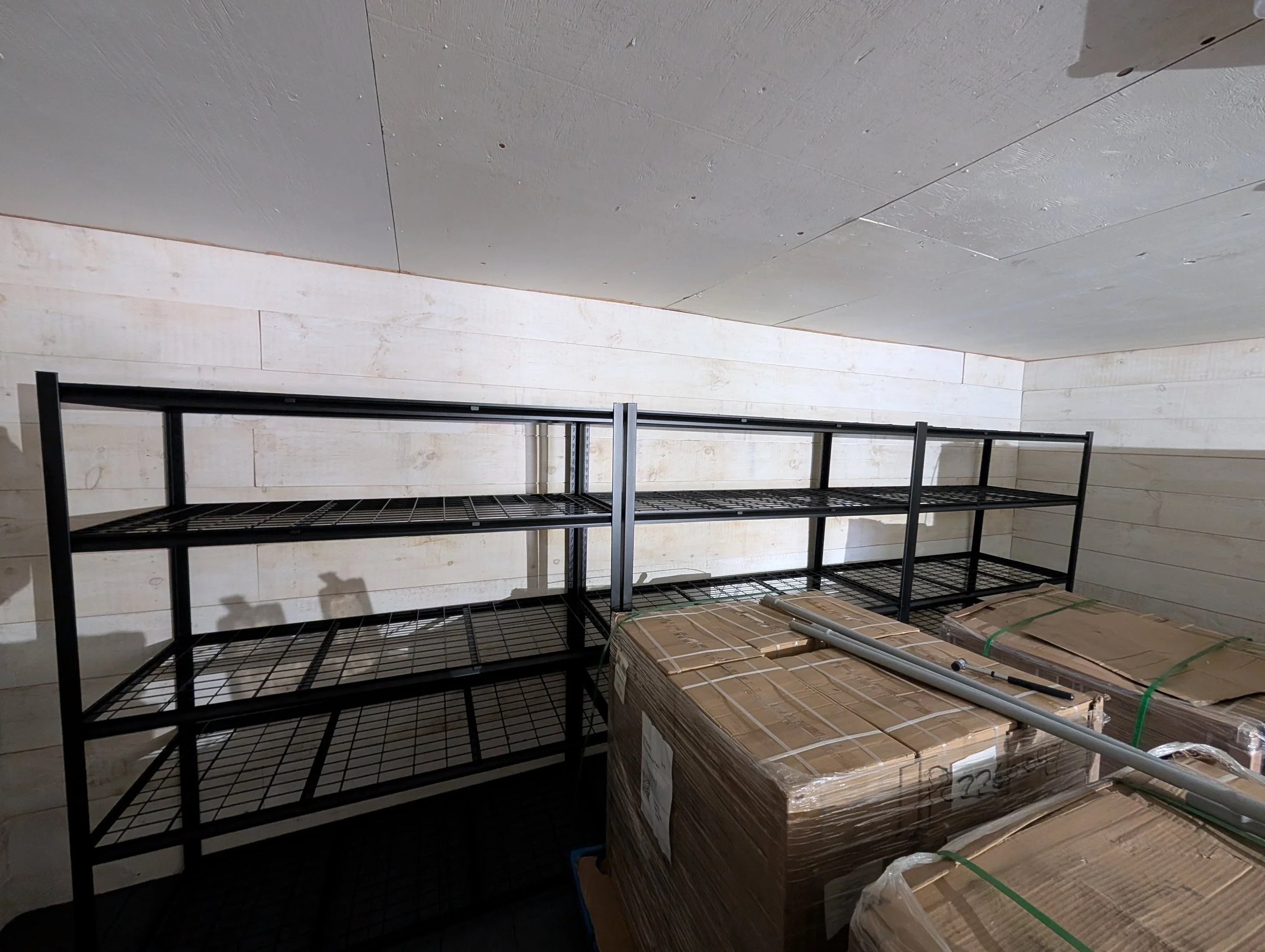 The new storage racks arrived last week and are now assembled, lagged to the wall, and leveled. These can hold 3000lbs each.